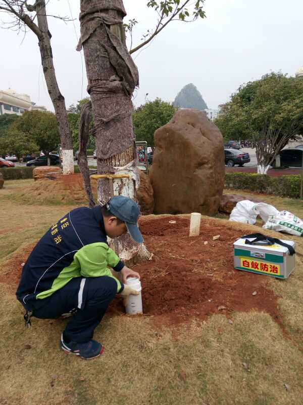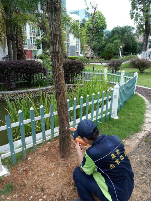 1.園林綠化建設前原地下有白蟻,當種好樹木后,白蟻從地下道先對樹根蛀食,逐步向整棵樹木擴展蛀食,從而影響樹木生長以及觀賞性,白蟻危害嚴重時未得到專業(yè)白蟻防治,樹木將會死亡倒下,倒下過程中還會壓到人或車,造成不可估計的經(jīng)濟損失。